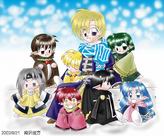 カラーイラスト自体、かなり久しぶりだったらしくて、とんでもなく冷や汗ものだったとか。 最初から失敗しまくりでくじけそうになった・・・なんていってますよ? もう1枚描けって言われても無理!って思うって、崎沢もつぶやいてます。 だけど、「描いて色塗って・・・楽しかったです」って。 良く見ると思いっきり間違ってる所がちらりほらり・・・いえ、かなりありそうですね、これ。 そのうえ、マシェルさんもなんだか頭身がおかしいですしやっぱり・・・あまり似てないかも。 その分、子竜たちがかわいく描けてるから・・・まだ救われるかもしれませんけど。 |